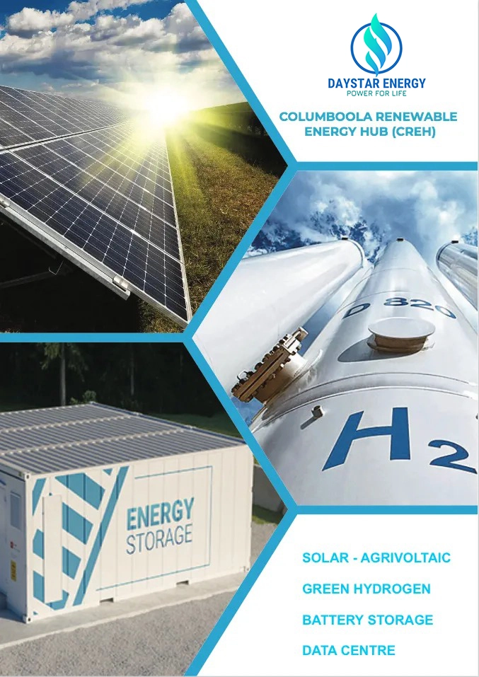Daystar Energy’s Columboola Renewable Energy Hub (CREH) —solar, battery, hydrogen, and data creating sustainable growth, clean energy, and long-term value.